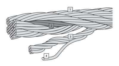 O Elemento de UMA corda que é composta por UMA construção de FIOs que estão hélicamente encalhados Na mesma direção EM UMA Ou Mais camadas EM torno de um núcleo.