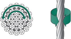 As cordas resistentes à rotação são cordas que são projetadas de modo a Criar um binário reduzido e UMA rotação reduzida sob a carga.Em geral, eles são compostos por UMA construção de pelo Menos duas camadas de FIO que são helically encalhados EM torno de um núcleo.As camadas Exteriores Da cadeia Nesta construção estão encalhadas EM Frente à camada de FIO abaixo.