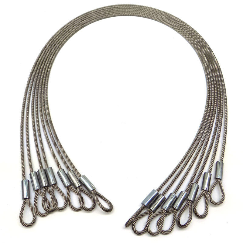 Os estilingues de aço inoxidável da corda de fio, 3/16" x 45", o núcleo da costa 7x19, 1-3/8” Eyes