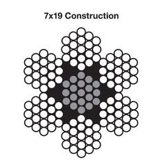 a corda de fio 7 x 19 é construída de sete costas de dezenove fios. 7 x 19 são mais fortes de 7 x 7 e têm a flexibilidade excelente e a boa resistência de abrasão. A força superior permite usos múltiplos, tais como fios de indivíduo, a suspensão líquida, a trela animal, as linhas do baraço e os guinchos.