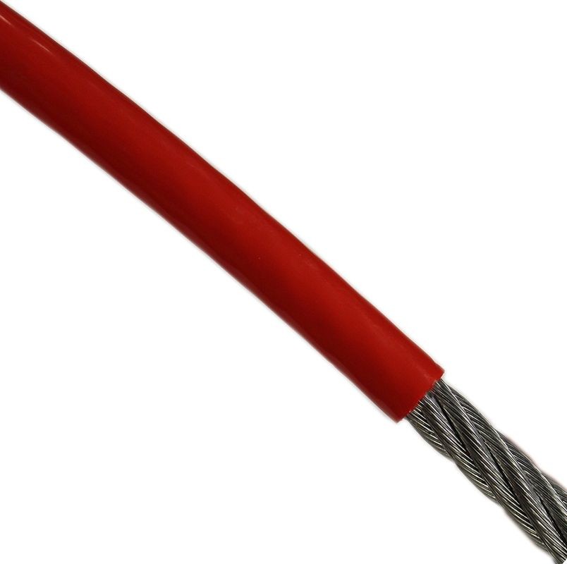 a corda de fio Nylon-revestida, de aço inoxidável com construção 7x19 padrão pode ser usada sobre as polias, equipamento, guinchos, no equipamento do exercício, nos mecânicos da porta da garagem, e para cordas da vela e cabos de controle. Esta corda de fio vermelho-é colorida para a facilidade do reconhecimento. 304 de aço inoxidável, igualmente chamado 18-8, são resistentes à corrosão, resistem escalar, e suportam altas temperaturas para uma vasta gama de operação. De aço inoxidável é um material versátil, de uso geral em uma grande variedade de aplicações, e em atmosferas salinas. O revestimento de nylon é muito forte, de pouco peso, e flexível, tem a abrasão-resistência excelente, e resiste-a esmagar e rachar-se. o núcleo da costa 7x19 tem sete costas da corda de fio com dezenove fios em cada costa formada helicoidal em torno de um núcleo da costa. o núcleo da costa 7x19 é mais flexível e fadiga-resistente do que a construção da classe 7x7.