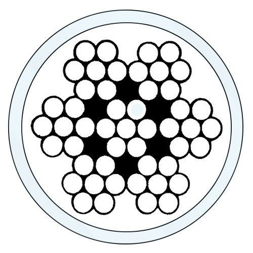a corda de fio Nylon-revestida, de aço inoxidável com construção 7x7 padrão é de uso geral nas polias, e nos aviões e em controles automotivos. Esta corda de fio preto-é colorida para a facilidade do reconhecimento. 304 de aço inoxidável, igualmente chamado 18-8, são resistentes à corrosão, resistem escalar, e suportam altas temperaturas para uma vasta gama de operação. De aço inoxidável é um material versátil, de uso geral em uma grande variedade de aplicações, e em atmosferas salinas. O revestimento de nylon é muito forte, de pouco peso, e flexível, tem a abrasão-resistência excelente, e resiste-a esmagar e rachar-se. o núcleo da costa 7x7 tem sete costas da corda de fio com sete fios em cada costa formada helicoidal em torno de um núcleo da costa. o núcleo da costa 7x7 é mais forte mas menos flexível do que 6x19 e 6x36 classificam construções.