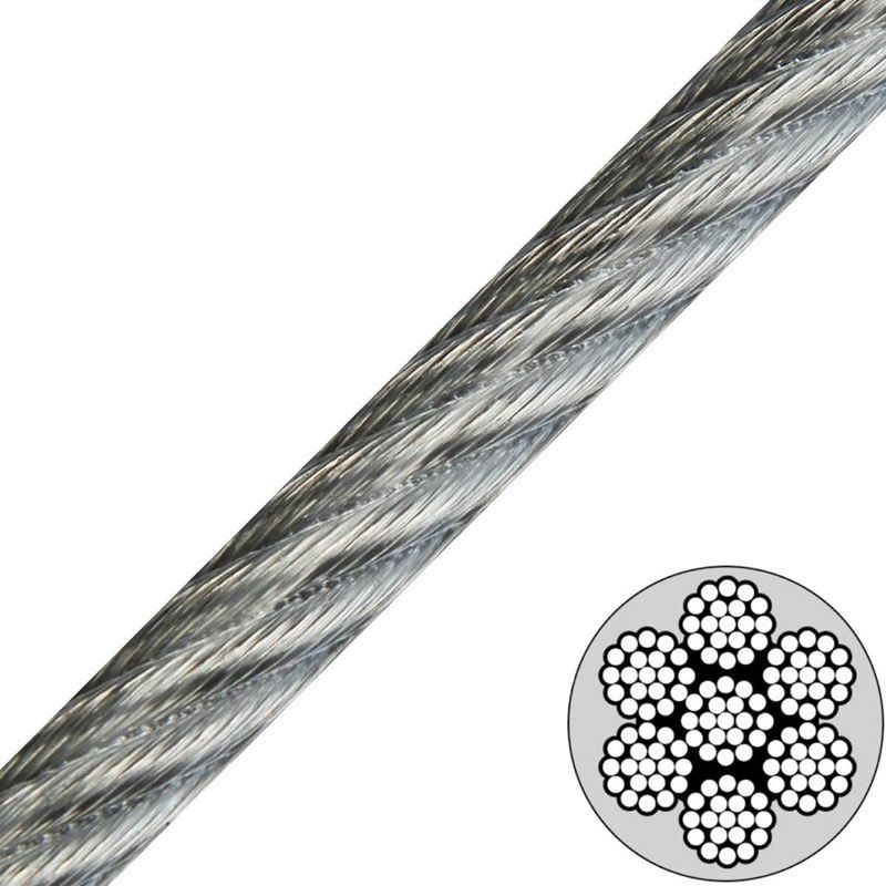 O cabo galvanizado dos aviões com vinil claro vinil exterior revestido é um baixo custo, o revestimento de uso geral que é muito flexível e fácil de descascar. Os pedidos típicos para o cabo de aço revestido vinil incluem cabos da segurança, sistemas de cabo do fechamento, corridas do animal e finalidades da exposição.