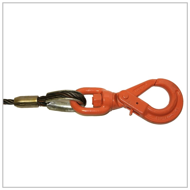 | Cabo de aço | Gancho do giro | A função total é similar a um gancho padrão, simplesmente este gancho gerencie sobre um eixo que faz para umas conexões mais fáceis, gancho que posiciona e menos obrigatório. |