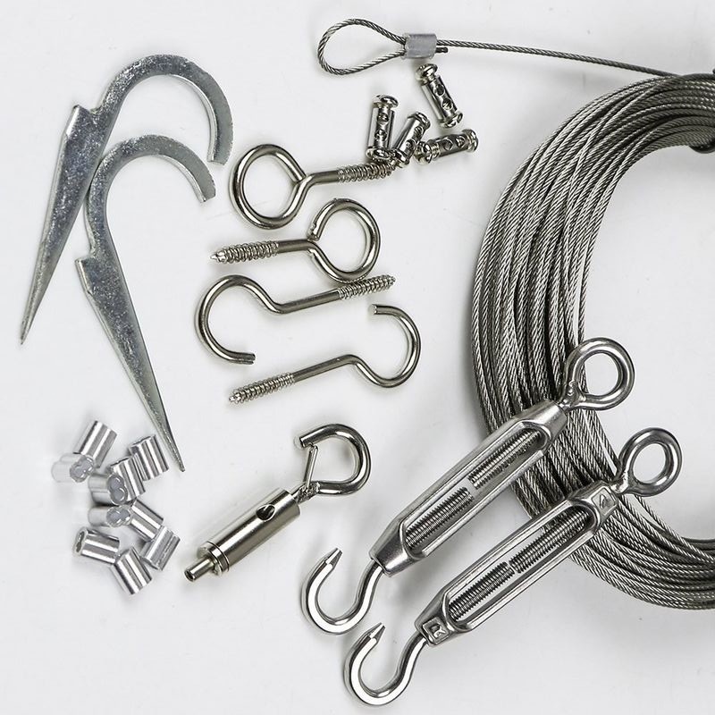 • 130 pés de comprimento; 1/16 de polegada no diâmetro, os acessórios adicionais do cabo de aço Galvanized, segundo as indicações da imagem.