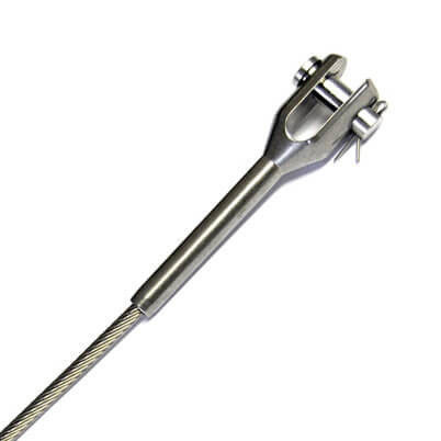 O conjunto do equipamento da corda de fio com encaixes de extremidade fixos da forquilha, em uma escolha da corda de fio da costa 7x7 e 1x19, cada cabo é feito para medir com todos os componentes produzidos da categoria marinha de aço inoxidável.