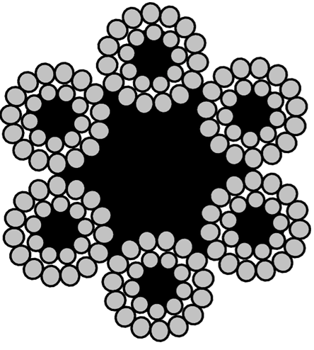 Cada fio tem três componentes básicos: os fios, fios e núcleo. O núcleo pode ser fibra (FC), como sisal, manila ou juta, ou um Núcleo de Corda Independente (IWRC), que na verdade é um cabo de aço menor dentro dos fios do cabo externo.