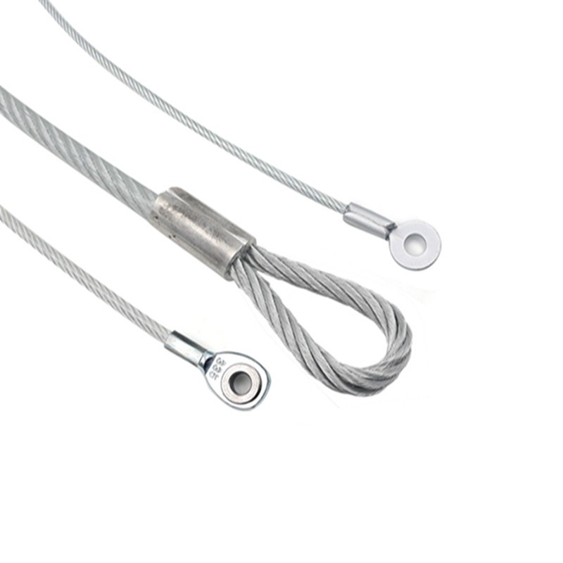 Iluminação, maquinaria, médica, segurança, bens ostentando, brinquedos, janela, Gramado & Jardim etc. Ao projetar um conjunto de cabo, um número de fatores precisam de ser considerado como, carga de trabalho, abrasão, vida de ciclo, e flexibilidade, ambiente, custo, segurança .etc. maior o diâmetro maior a capacidade de carga do trabalho e menos flexível será. AVISO: A força de quebra deve nunca ser considerada a corda carga de funcionamento, 5:1 do fator de segurança, O revestimento dever ser removido da área da instalação quando os encaixes de união |