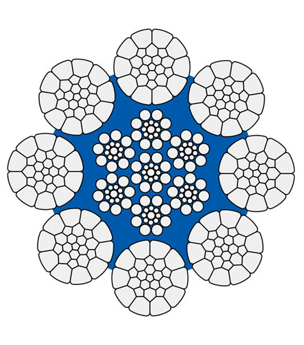 Esta corda de fio pertence não na classificação resistente da rotação mas suas costas são comprimidas e é usada principalmente como bordejar a corda de fio no navio da eficiência elevada & em guindastes móveis do porto, guindastes de ponte do recipiente, gruas de viagem das despesas gerais, guindastes minerais da carga.