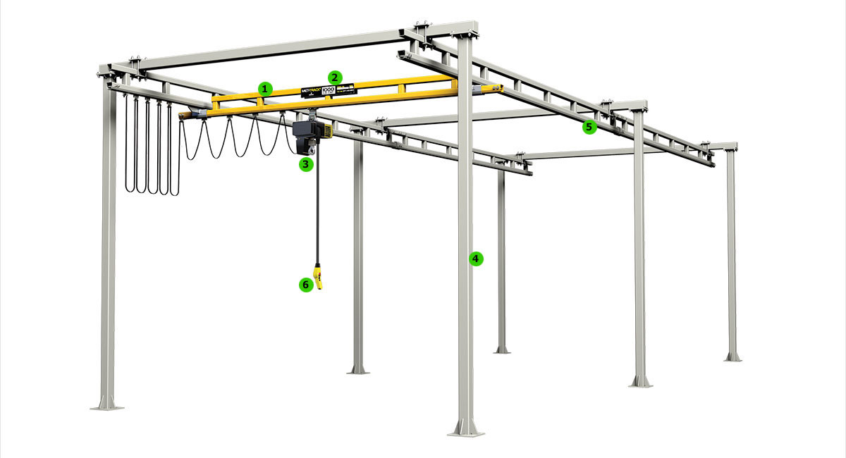 Os guindastes de ponte são os melhores para transportar cargas pesadas fora, como para fábricas, e para carregar e descarregar cargas pesadas entre um cargueiro e a doca. Podem ser construídos para o trole, a grua, e as outras aplicações.