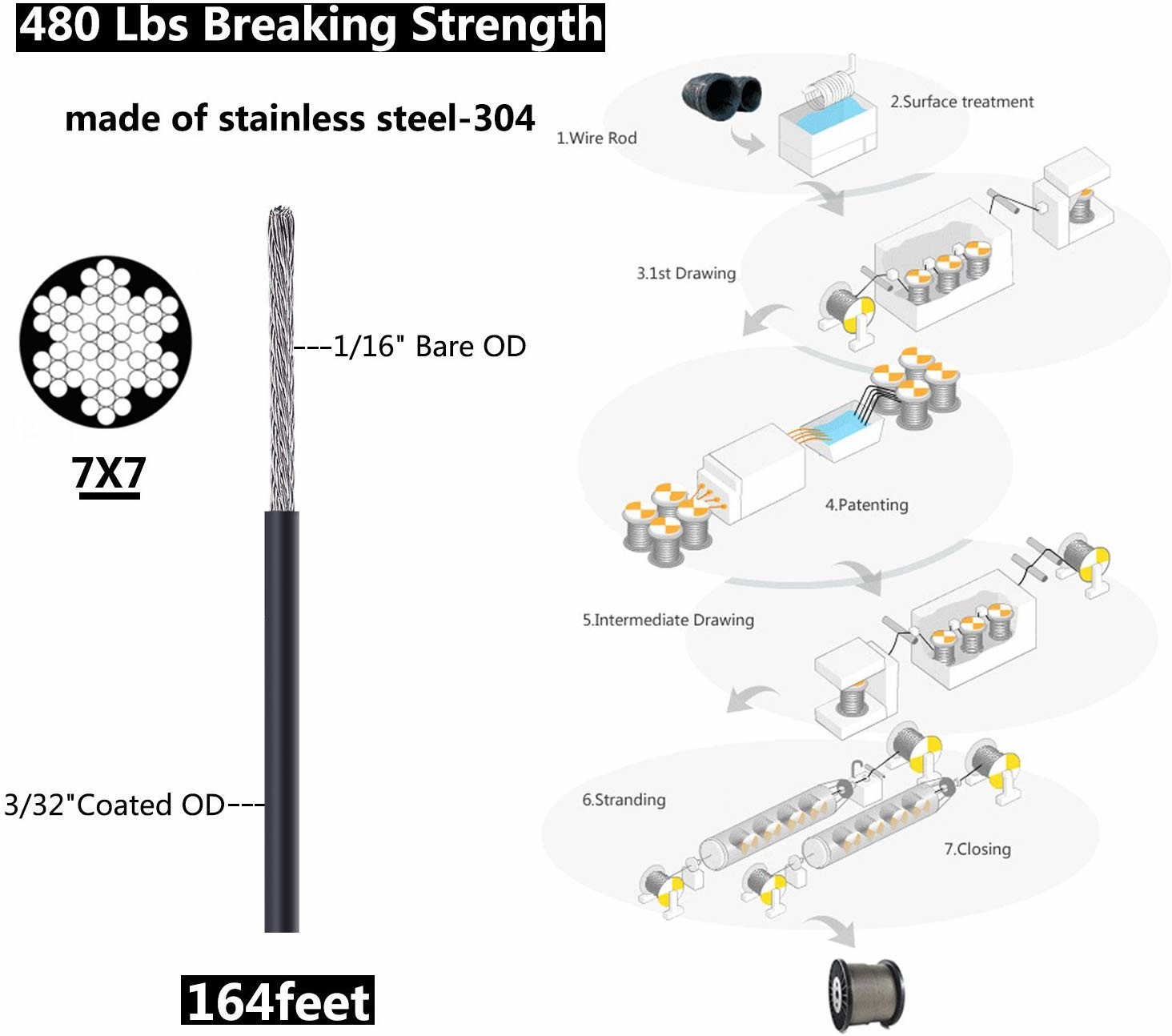 164 ft de cabo de aço inoxidável Picovolt-revestido
