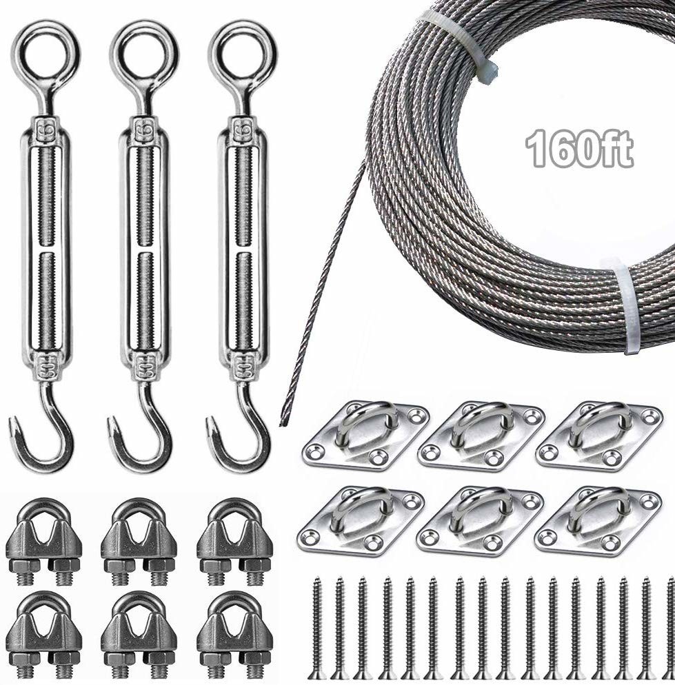 Luzes exteriores da corda que penduram o jogo, categoria comercial - corda e hardware forte de fio, 304 jogos de aço inoxidável bem feito da suspensão com grande durabilidade e resistência de oxidação - fácil instalar