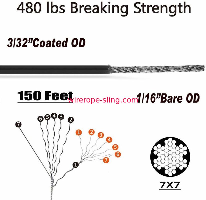 Cabo da corda de fio: 1/16” OD, 3/32" com PVC OD revestido. 304 de aço inoxidável, 164 pés.