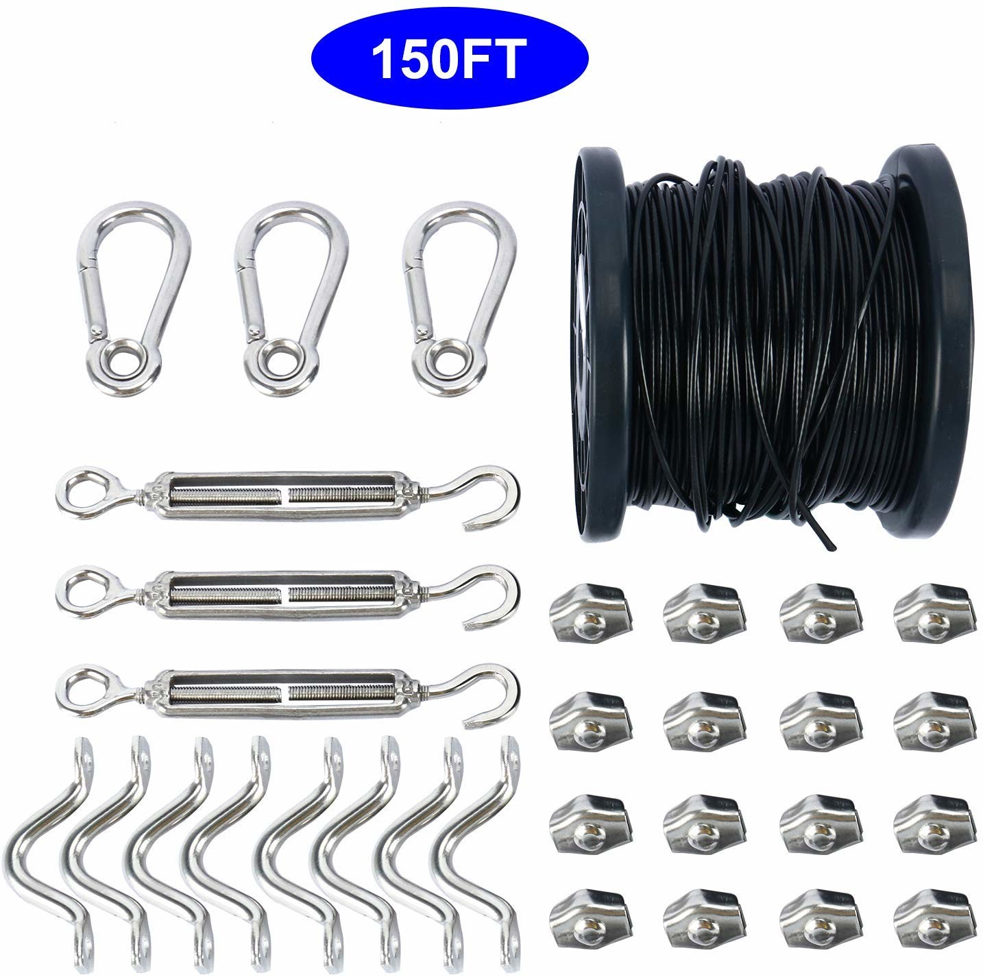 Do jogo de aço inoxidável da suspensão da corda de LKS cabo, tensor e ganchos exteriores da corda de fio do fio With150 FT