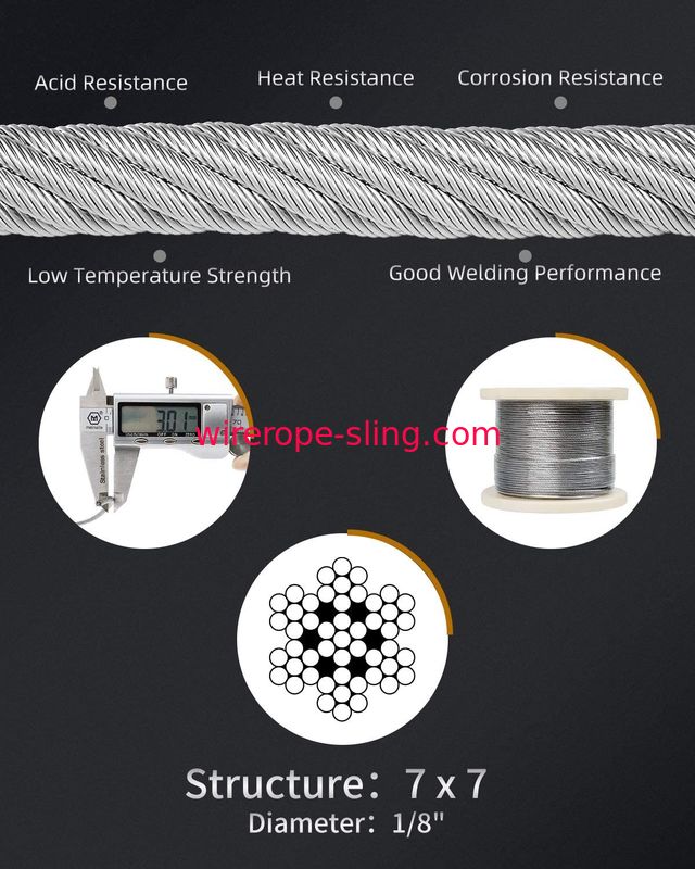 Quatro construções principais de cordas de fio de aço inoxidável - 1 × 19, 7 × 7, 7 × 19, 6 × 36 FC/IWRC está disponível