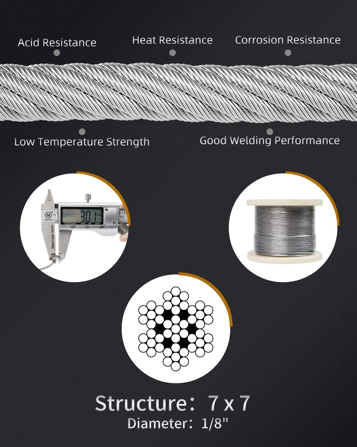 • OD: 1/8 de polegada, comprimento: 1000ft, construção: 7 x 7. enrolados ordenadamente no carretel.